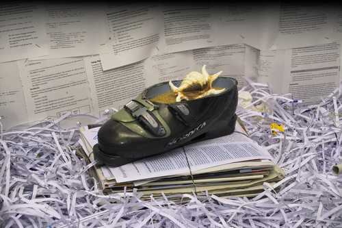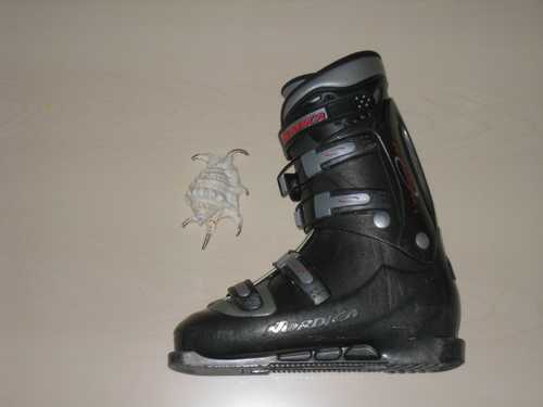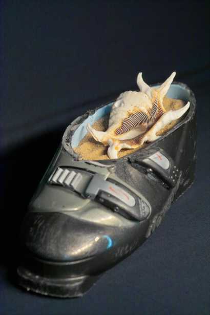 Material used: skiing boots, a shell of a mussel, a cloth/ bath towel, sand
